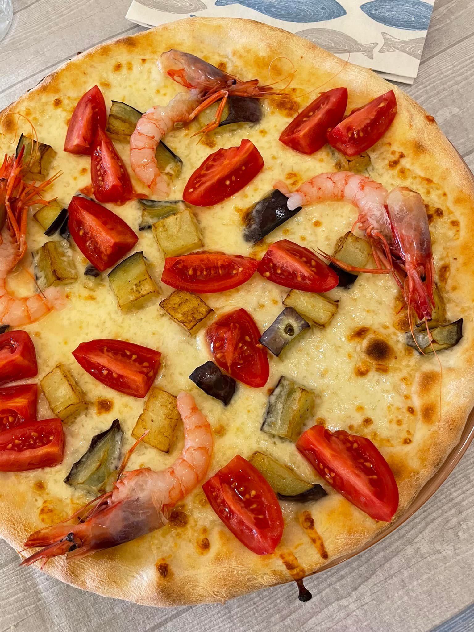 Fish ravioli, prawn and fresh tomato